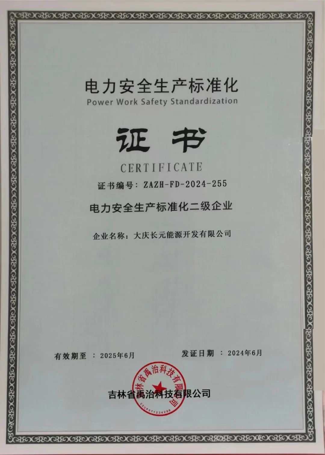 (图为下属项目公司电力安全生产标准化二级证书)