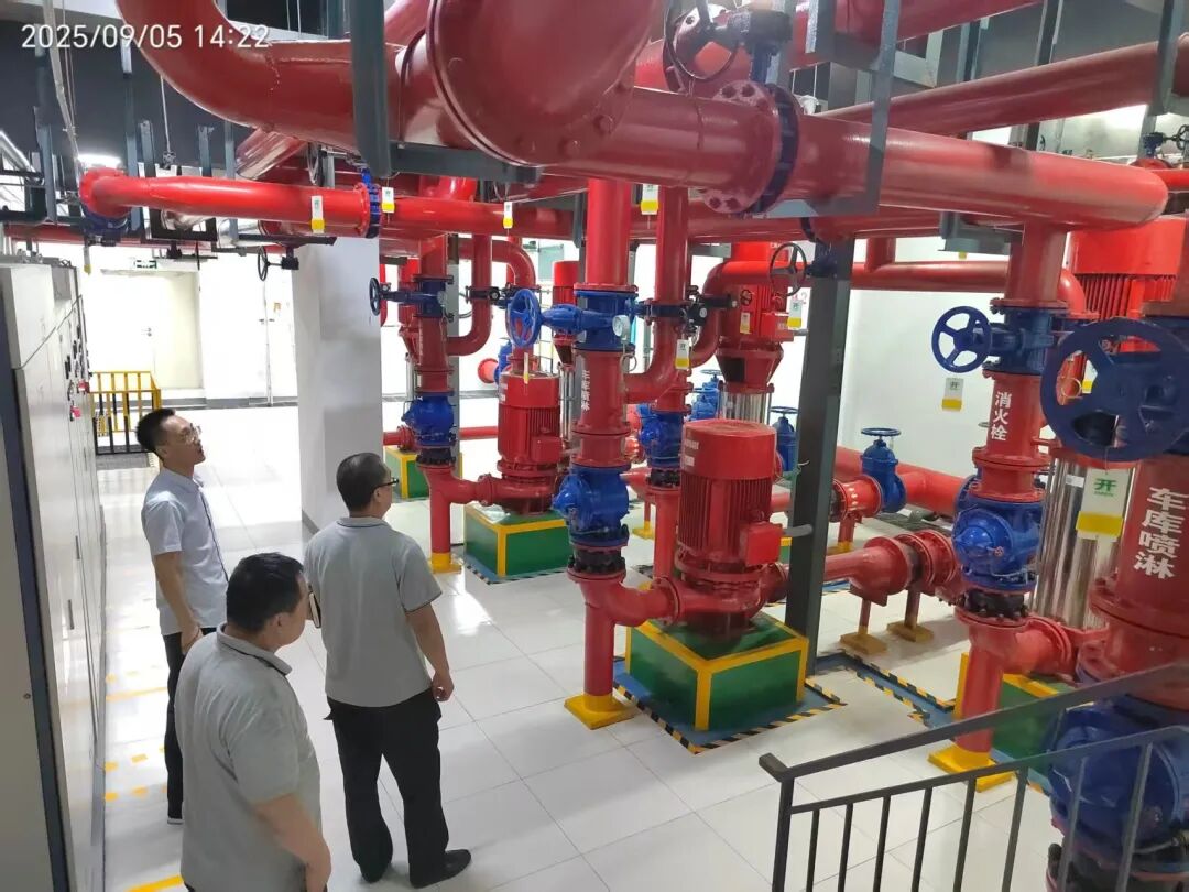(图为物业工作人员检查消防管道)