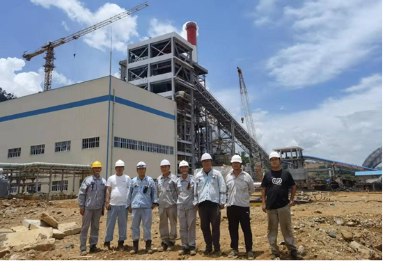 (图为现场设备最后调试、电厂烟囱投入使用)